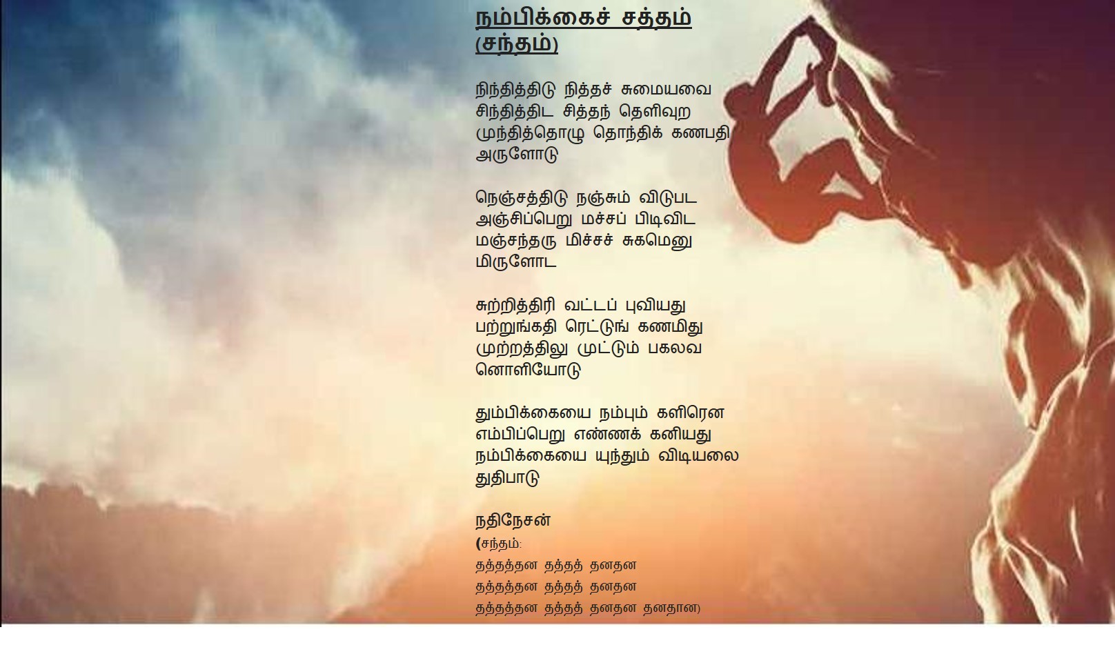 நம்பிக்கையை யுந்தும் விடியலை துதிபாடு