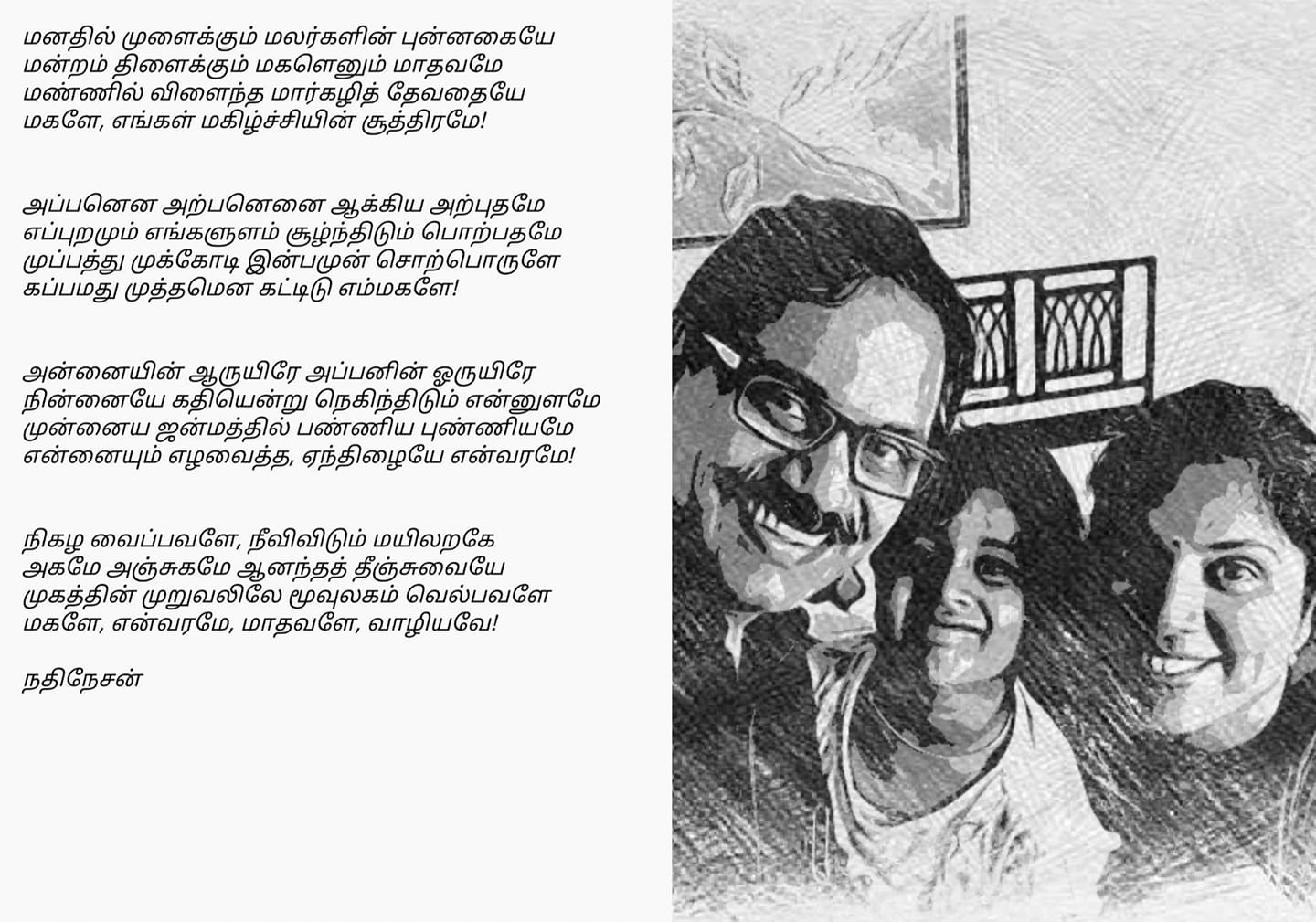 மகளே, என்வரமே, மாதவளே, வாழியவே!